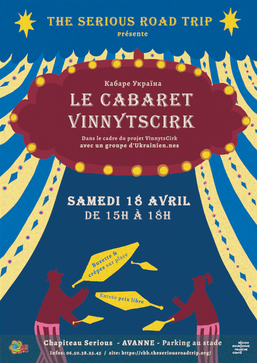Durant le séjour en France, du tempos sera consacré à une création d’un cabaret cirque entre les participant.es ukrainien.nes et les intervenantes cirque du Serious de Besançon et Roumanie. Nous vous invitons à venir découvrir cette création qui sera présentée sous le chapiteau du Serious à Avanne le 18 avril à 16h.